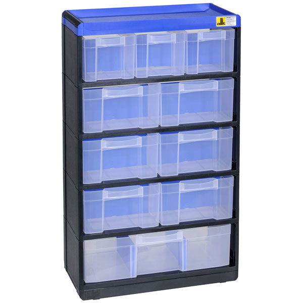 The Allit VarioPlus Pro 53/21 is a small parts container with dimensions of 300 x 525 x 135 mm. Featuring a durable black and blue design, this storage box is ideal for organising and transporting small components. Its robust construction makes it suitable for use in workshops or craft rooms where efficient storage is essential.