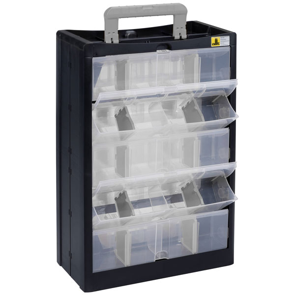 The Allit VarioPlus DrawBox C 40 is a black and grey small parts container designed for efficient organisation. With dimensions of 300 x 465 x 155 mm, it is ideal for storing and transporting small items and components. This storage solution is perfect for workshops and hobbyists needing sturdy containers for their tools and materials.