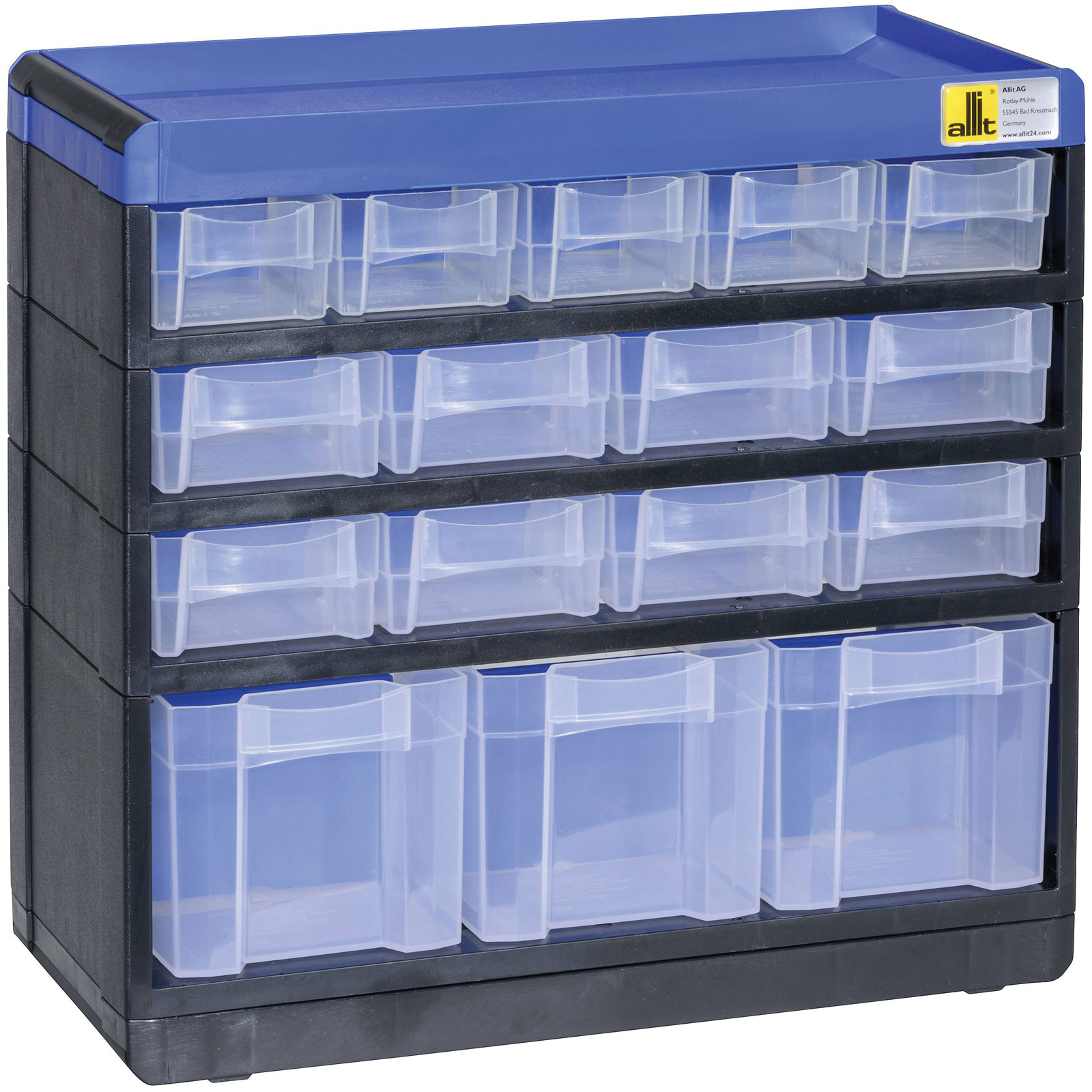 Allit 464610 Small Parts Container 300x285x135mm Black/Blue Plastic |