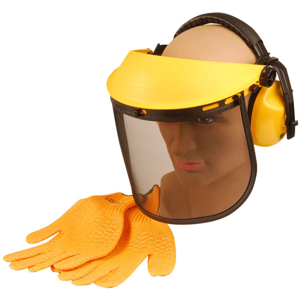 The ALM CH012 Grass and Hedge Trimmer safety kit comprises of ear defenders, metal mesh face shield (guard) and one pair of non slip gloves. For use with all electric and petrol trimmers.