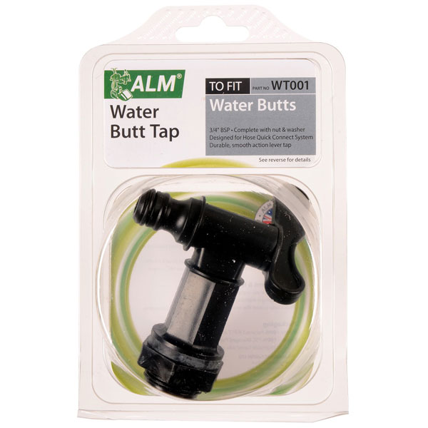 This ALM Water Butt Tap fits most water butts, drums, fermenters, and home-brew barrels, and has a durable, smooth action lever tap. Designed for use with the hose quick connect system.