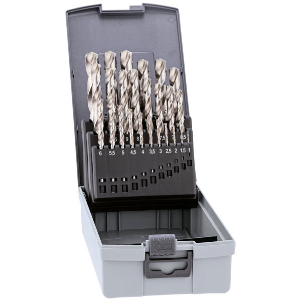 Manufactured by Alpen, the 25-piece HSS metal twist drill bit set features high-speed steel for durability. The cylinder shank design ensures precise drilling in metal and steel materials. Ideal for machining and working on sheet metal, this drill bit set is suitable for professional use.