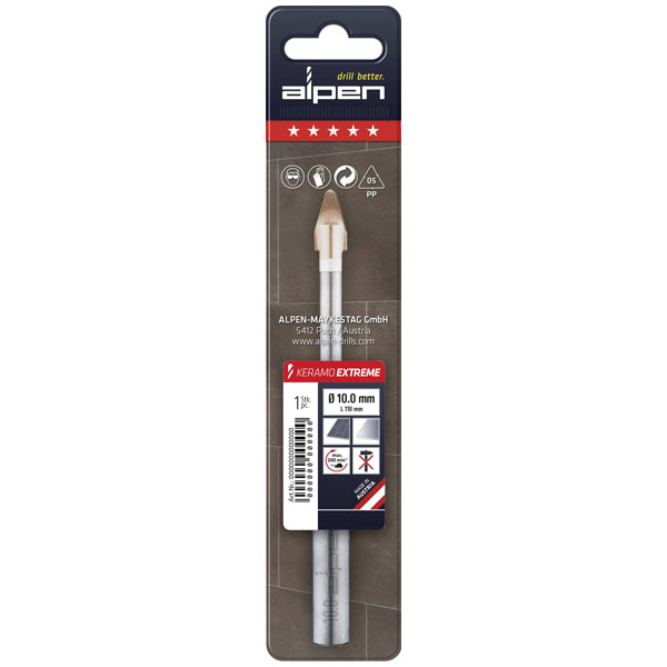 Alpen 0030001000100 Tile Drill Bit 10mm For Hard Tiles & Glass 1pc