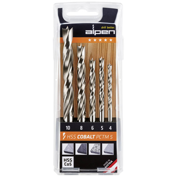 Alpen 0063300005100 Wood Drill Bit Set 5 pcs 5% Cobalt 4-10 mm Range