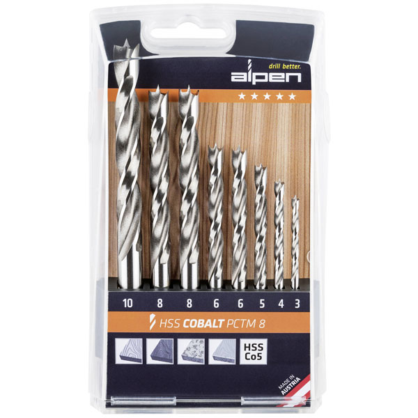 Alpen 0063300008100 Wood Twist Drill Bit Set 8-Piece Cobalt-Alloy