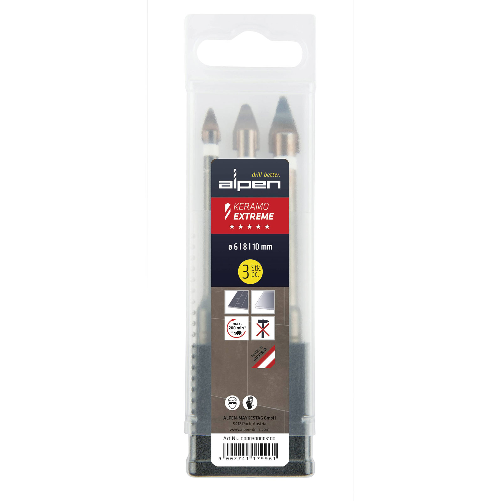 Alpen 0000300003100 Keramo Glass Drill Bit Set 6/8/10mm 1pc