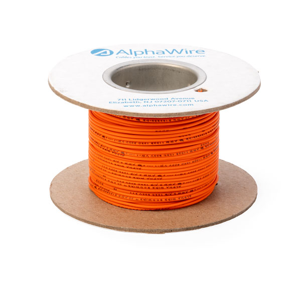 An orange 20AWG hook-up wire that is part of the EcoWire family of fully recyclable wire. The wire features increased performance due to its unique modified polyphenylene ether (mPPE) thermoplastic insulation which contains no halogens, phthalates or heavy metals, allowing it to help meet WEEE requirements. Additional features such as better dielectric strength, wide temperature range that meets VW-1 and low specific gravity make this wire suitable for a wide range of applications.