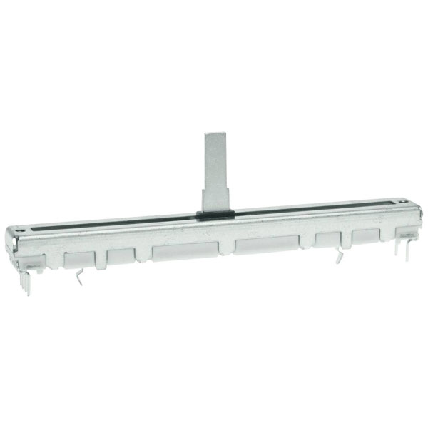 The ALPS 402126 Soundboard Fader is a potentiometer with a 10 kO resistance and logarithmic taper, capable of handling 0.1 watts. This stereo fader is designed for precise audio control, making it ideal for use in sound mixing desks and audio equipment. Its slider pot design allows for smooth and accurate adjustments in soundboard applications.