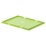 The Alutec 05081 lid is designed for storage and transport boxes with dimensions of 300 mm by 400 mm. This green lid ensures secure coverage of boxes and containers. It is ideal for both storage and transport applications.