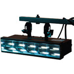 This 5-zone LED strobe lighting unit features a traditional LED strobe as well as a 5-zone chase effect that gives lighting designers the ability to create a vertical or horizontal chase sequence. The 5x 5W white LEDs can be strobed at up to 1200 times per minute, controllable by DMX, as is the chase speed and the 0 to 100% dimmability. The unit can operate in one of three modes: DMX controlled, master/slave or sound active (via the units internal microphone).