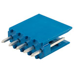 Single row blue vertical PCB header with 5 ways from the Tyco HE14 Series, incorporating a polarised friction lock.