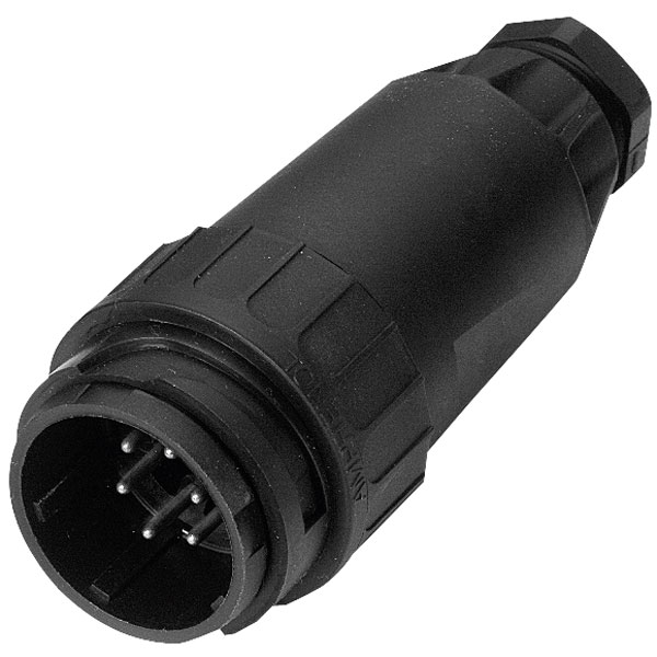 An Amphenol C 16-3 cable-mounting male connector.
