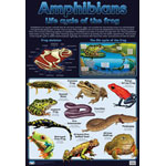 This wall chart shows an illustrated frog life cycle as well as anatomical details of the frog and illustrations of common amphibians.