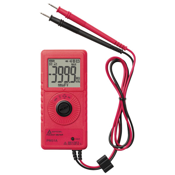 This shirt-pocket-sized meter weighs less than 3oz. With full functionality offering AC and DC voltage to 600V, resistance, capacitance, frequency, continuity w/beeper and diode test. Fully autoranging, this meter offers seven different measurement functions with 27 full ranges of measurement. The digital display is oversized with large digits. In spite of its size, the meter is fully safety rated to CAT III 300V, CAT II 600V. No other meter offers this small size with such performance and high safety ratings.