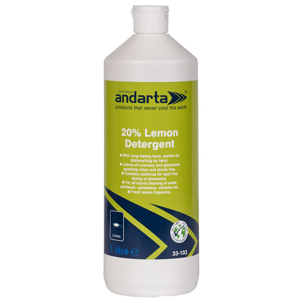 This detergent from Andarta is a mild but long-lasting multi-purpose cleaner ideal for use on a wide range of surfaces from floors and worktops to cutlery and glassware. The mild detergent allows for streak-free drying and gently lifts grime and stains.