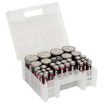 - Robust plastic storage box containing 14x AAA, 12x AA, 4x C, 4x D and 1x PP3 (E-block 9V) batteries