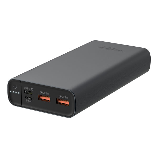 The Ansmann Power Bank W2003 is a rechargeable Li-Polymer battery pack with a capacity of 20,000mAh providing a useful extra power source for your USB-powered devices like mobile phones, tablets and portable computers.
