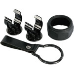 This accessory set for Ansmann torches includes an anti-shock ring which also serves as an anti-roll device, a wall mount and a belt holder.