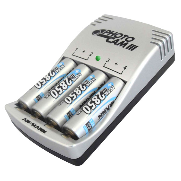 The Ansmann Photocam III is a plug-in charger with automatic battery-full detection (-deltaV) and is ideal for charging the batteries of digital cameras.