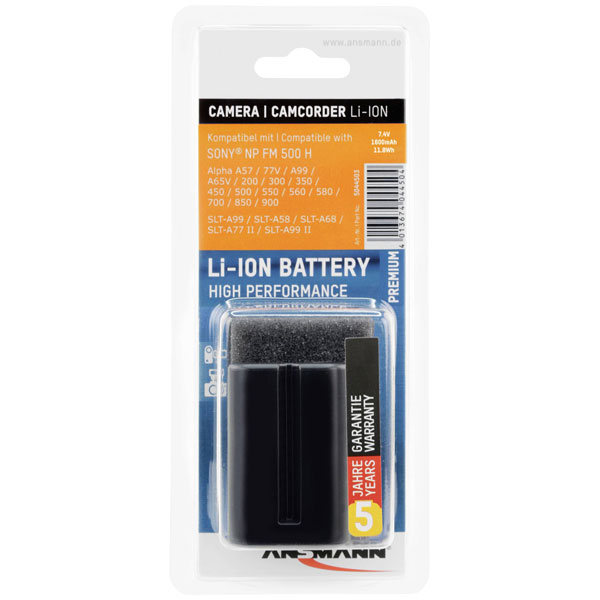 Ansmann NP-FM500H camera battery replaces the original NP-FM500H battery with a capacity of 7.4 V and 1600 mAh. It serves as a reliable digital camera and camcorder replacement battery, suitable for various applications. Ideal for photographers seeking a dependable camera spare battery for extended shoots.