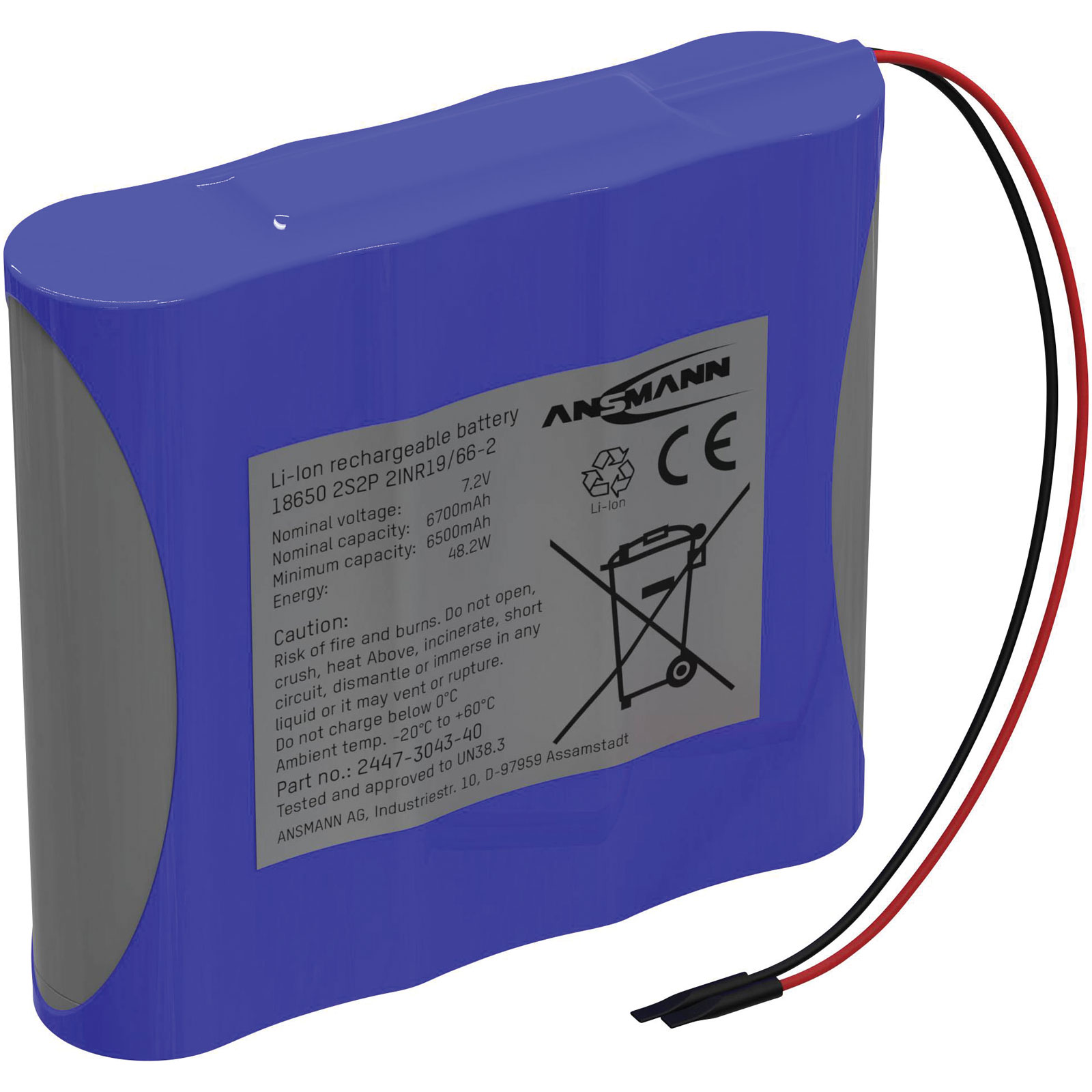Ansmann 2447-3043-50 Battery Pack Li-ion 7.2V 5100mAh 4x18650 Cells