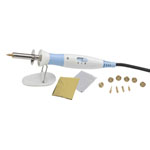 The Antex Foil Master Hot Foil tool allows you to add foil to your designs. It is ideal for cards, leather and fabric, etc. The tool comes complete with a stand, 10 tips, silver foil, gold foil and glossy card. The tool can be used freehand or with metal stencils.