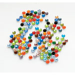 An assortment of small, reflective, coloured rhinestone gems backed with a heat-activated glue.