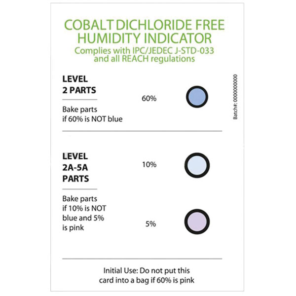 The Antistat group manufactures ESD humidity indicator cards, which are sold in sets of 100 pcs and feature colour-changing capabilities.