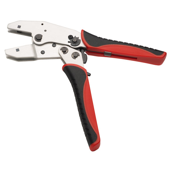 A professional quality, lightweight aluminium-framed ratchet crimping plier for use with a range of quick-change jaws, suitable for a wide range of crimp connectors.