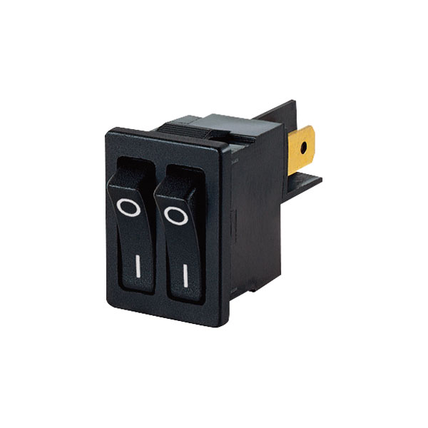 These Black Ultraslim Dual Rocker Switches from Arcolectric feature two independently switching On-Off switches with a high switching capacity. Equipped with a 10A switching current, 250V AC switching voltage, 13.5 x 19.2mm front panel thickness and comfortable latch fastening, both switches have a O and I printed at each end.