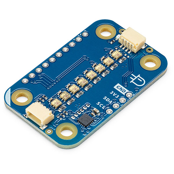 Arduino ABX00109 Modulino Pixels is an 8-LED RGB module designed for easy integration into the Arduino ecosystem with features like I2C connectivity and a Qwiic connector. Powered by an on-board STM32C011F4 microcontroller, it enables colourful visual effects and dynamic LED patterns for a variety of projects, including IoT displays and educational projects. It operates at 3.3V and is ideal for creating interactive lighting dashboards, notifications, and alerts.