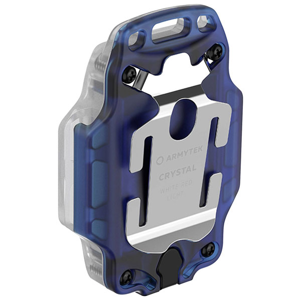 ArmyTek manufactures the F07001B Crystal Blue, a compact portable mini light with a monochrome blue LED. This magnetic touch light is ideal for illuminating small spaces and can be easily attached to metallic surfaces. It's powered by a battery, making it perfect for use as a convenient portable light source.