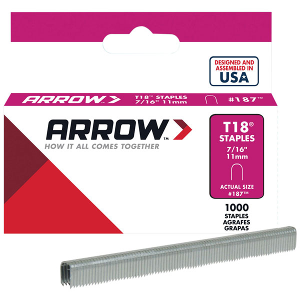 Arrow A187 T18 Staples 11mm (7/16in) Box 1000