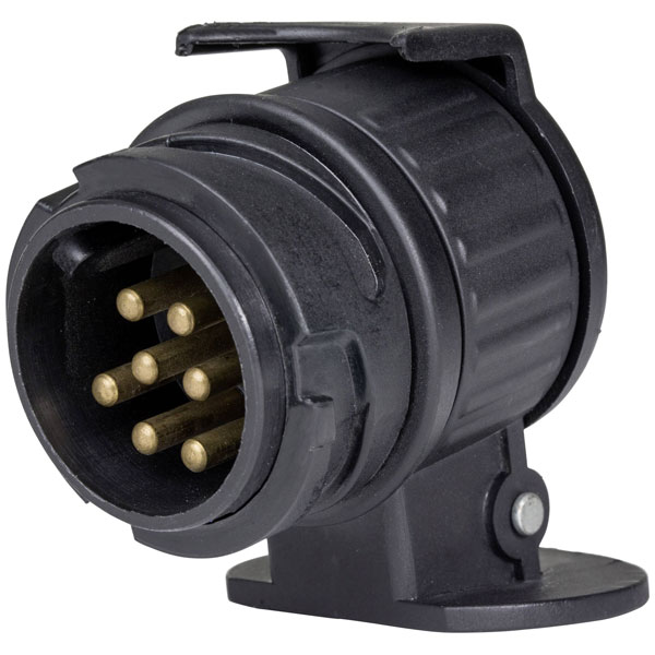 AS Schwabe 60439, also known as 1857287 - AS Schwabe 60439, is a trailer adapter designed for converting a 13-pin plug to a 7-pin socket using a push-fit system. This adapter is essential for ensuring compatibility between towing vehicles equipped with er 13-pin sockets and older trailers utilising 7-pin connectors. Constructed with robust materials suitable for industrial applications, it provides a reliable connection and facilitates efficient power transmission between vehicles and trailers. Ideal for use in automotive settings, the adapter is frequently applied in towing configurations for caravans, trailers, and bicycle racks, ensuring compliance with standardised vehicle electrical systems.