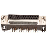 Assmann WSW A-D F 09 A KG T2 D-sub female connector USA standard THT 9-way 2.54mm pitch. Current rating 3A 3.20mm right angle pins, gold/tin plated contacts and PBT, UL94V-0 insulation. With locking bolts #4-40 UNC.