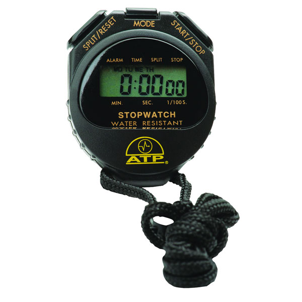 The ATP TM-308 12mm Digit Stopwatch is housed in an impact-resistant ABS case this stopwatch is easy to use for timing single events. This economy stopwatch with up to 1/100th of a second resolution, features, stop/start- lap and split time mode and reset buttons. The ATP TM-308 stopwatch is able to display 12 and 24 hour clock, time/calendar display and alarm.