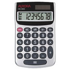 The HC300 handheld 8-digit calculator from Aurora operates from a built-in solar panel, or from its back-up battery in poor lighting conditions.
