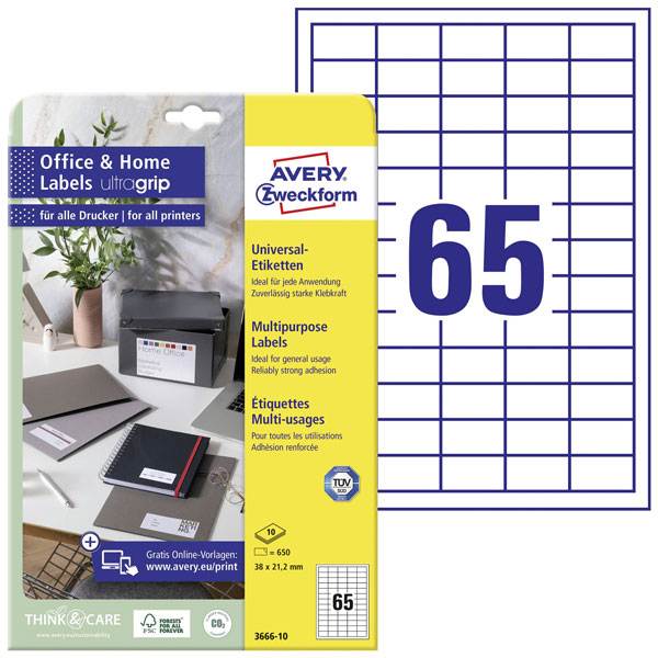 Avery-Zweckform 3666-10 All-purpose labels White Paper 38x21.2mm Pack of 650