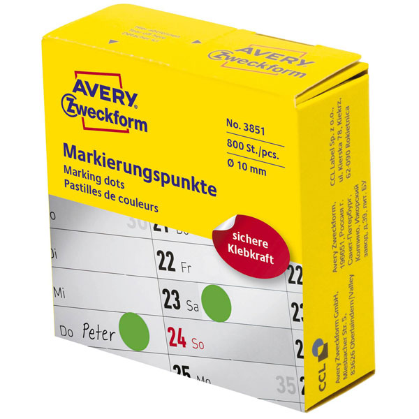 Avery-Zweckform 3851 Sticky dots Green Permanent Paper Ø10mm Pack of 800