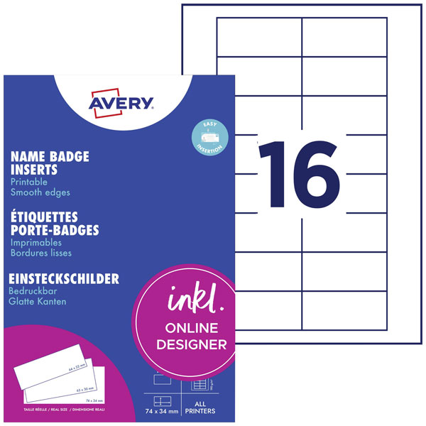 Avery-Zweckform DPC7434A-10 Name badge insert White Card 74mm x 34mm