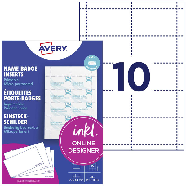 Avery-Zweckform L4727-20 is , alternately described as 3393373, designed for creating name badge inserts. These inserts are manufactured from high-quality white card material, ensuring durability and a professional appearance. Each card measures 90 millimetres by 54 millimetres, making them suitable for standard badge holders. These name badge inserts are highly relevant in engineering environments, such as at conferences, training sessions, or workshops, where clear and professional identification of personnel is necessary. The precise dimensions and material quality make them a reliable choice for both temporary and reusable badge applications.