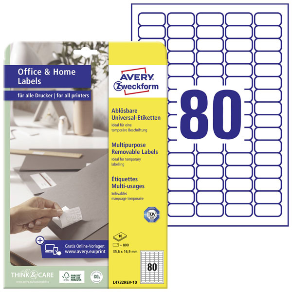Avery-Zweckform L4732REV-10 All-purpose labels White Paper 35.6 x 16.9 mm 800