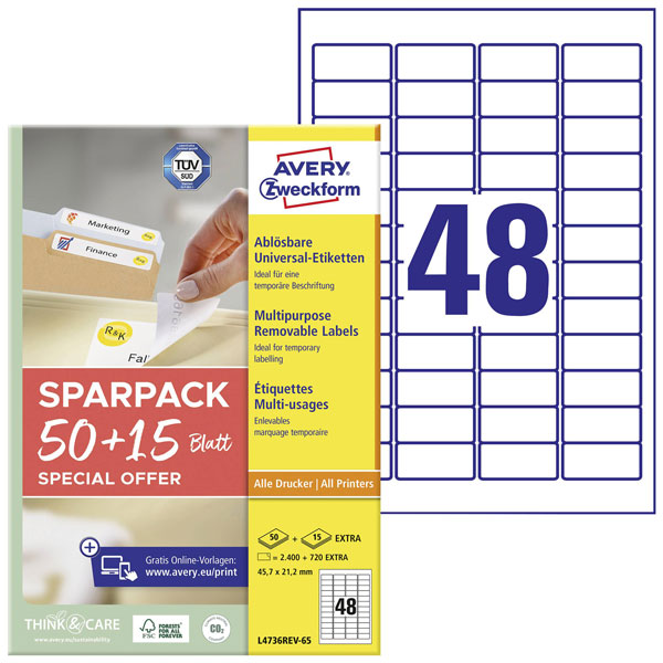 Brand: Avery-Zweckform MPN: L4736REV-65 EAN-13: 4004182347867