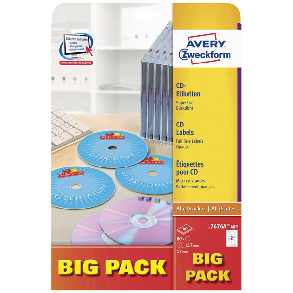 Avery-Zweckform L7676A-40P CD labels White Paper Permanent Ø 117mm 80pcs