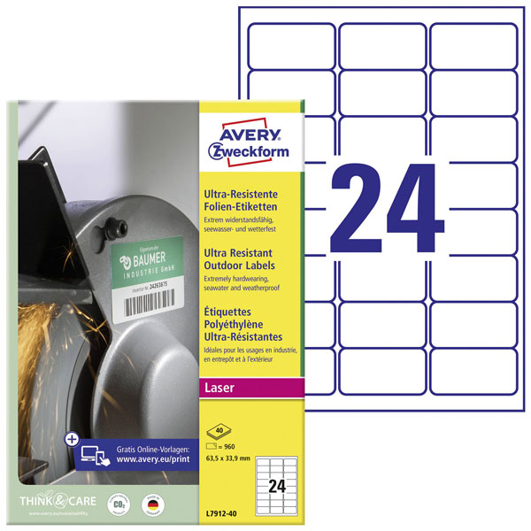 Avery-Zweckform L7912-40 All-purpose labels White PE film 63.5x33.9mm 960 pcs
