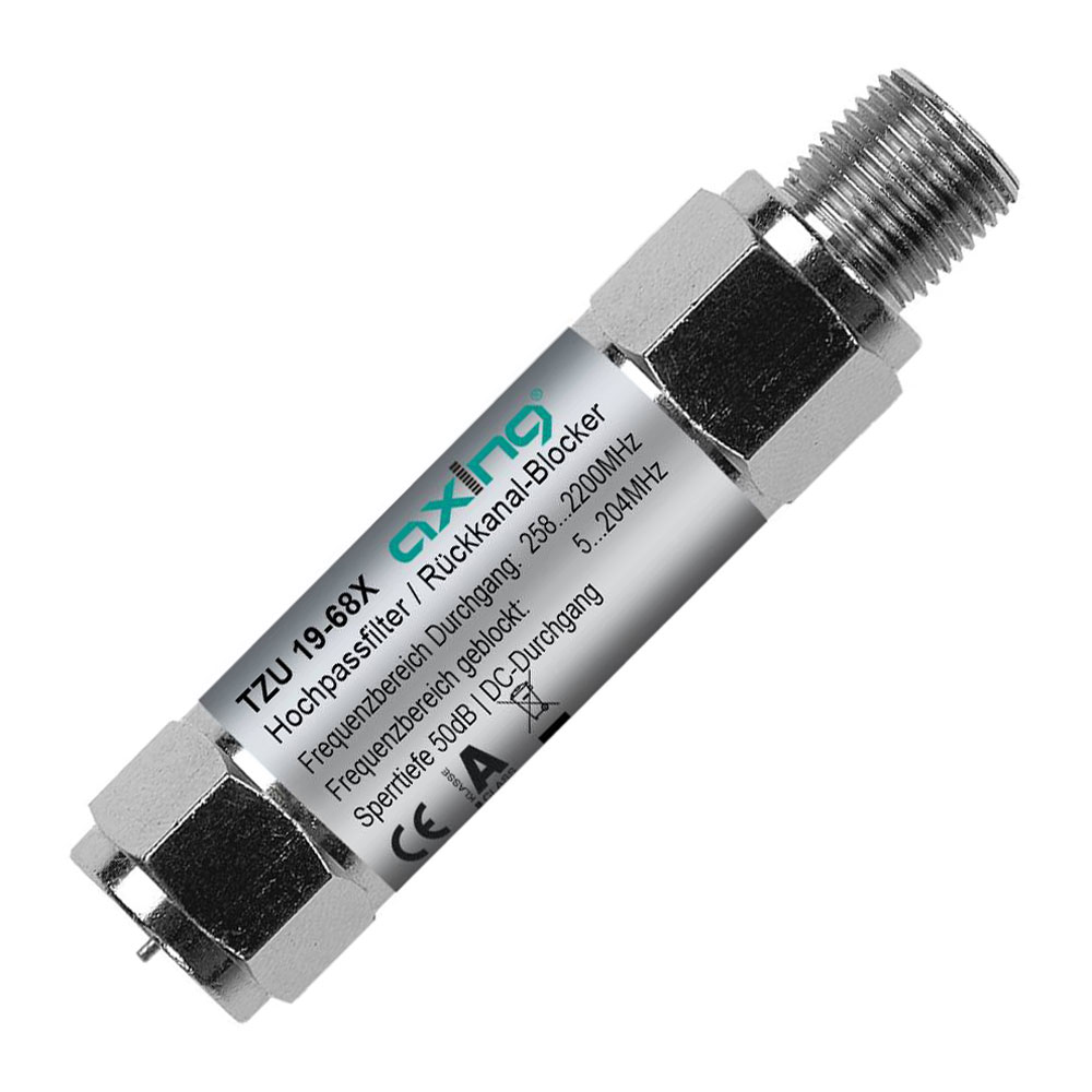 Axing TZU01968X High-pass Filter Coax Blocker is a component designed for Ethernet over Coax systems, alternatively described as model 2685035. This high-performance device allows the transmission of high-frequency signals while effectively blocking low-frequency interference and DC power, ensuring the integrity and reliability of data communication networks. With its coaxial configuration, the TZU01968X is particularly suited for use in residential, commercial, and industrial environments where multiple signals are distributed over a single coaxial cable infrastructure. The product is ideal for engineers seeking to optimise network performance by mitigating noise and enhancing signal quality in systems requiring segregation of data transmission from legacy television signals.