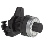 The BACO 223989 L21RP03 is a potentiometer actuator featuring a chrome-plated PVC front ring in black. Manufactured by BACO, it is designed for durable performance with a sleek appearance. This actuator is typically used in electrical devices to adjust resistance and control circuit functions.