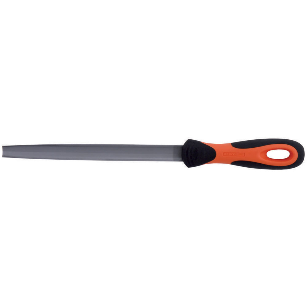 Bahco manufactures the 1-210-06-2-2 half-round file, which measures 150mm in length, 16mm in width, and 4.7mm in thickness, and comes with a handle. It features a cut 2 pattern, suitable for smoothing and deburring curved surfaces. This file is ideal for both metal and wood applications.
