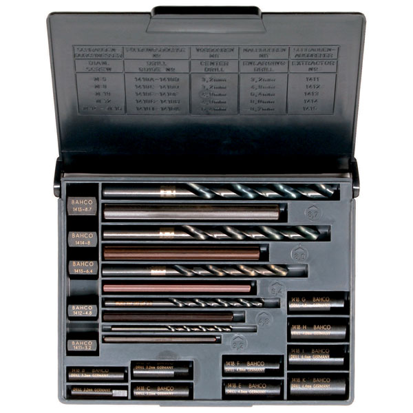 Bahco 1418S Screw Extractor Set 20-Piece Vanadium Bronzed Plastic Box