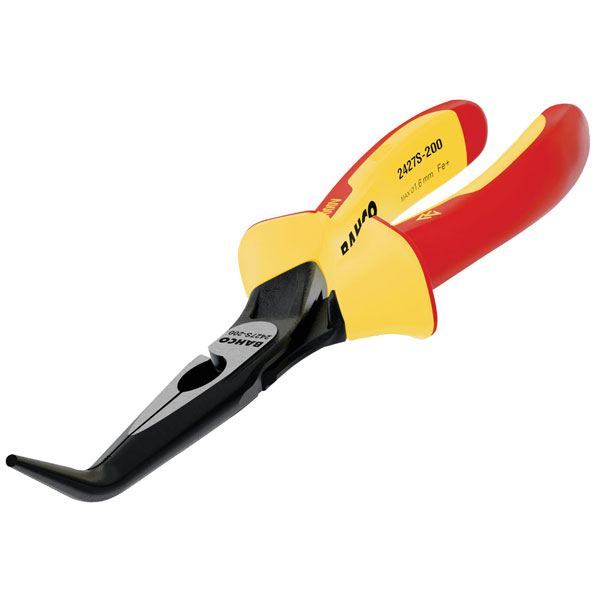Bahco ERGO™ Insulated Bent Nose Pliers have half-round serrated jaws for gripping flat and round material. The hardened cutting edges are suitable for cutting soft and hard wire. Made from high-performance alloy steel with a phosphate finish and anti-corrosion treated. Fitted with two-component ERGO™ insulated handles (thermoplastic surface on a tough polypropylene base) to provide superior grip.